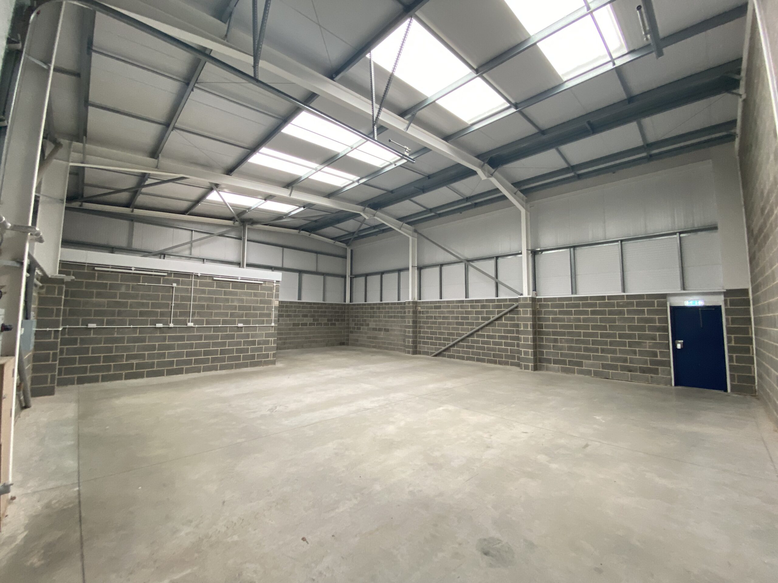 The building is constructed of portal steel frame, with part steel cladding panels and part facing block work under a pitched roof with circa 10% translucent roof lights. Internally the unit is fitted with a small office/reception area, and kitchen, within the warehouse and WC facilities.